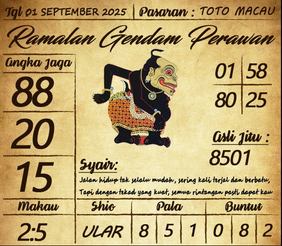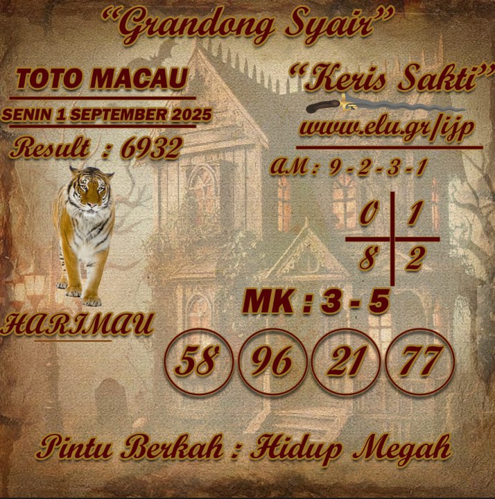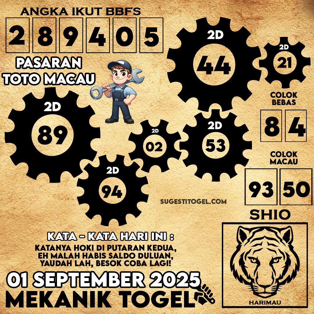 KODE SYAIR MACAU POOLS 01 SEPTEMBER 2025