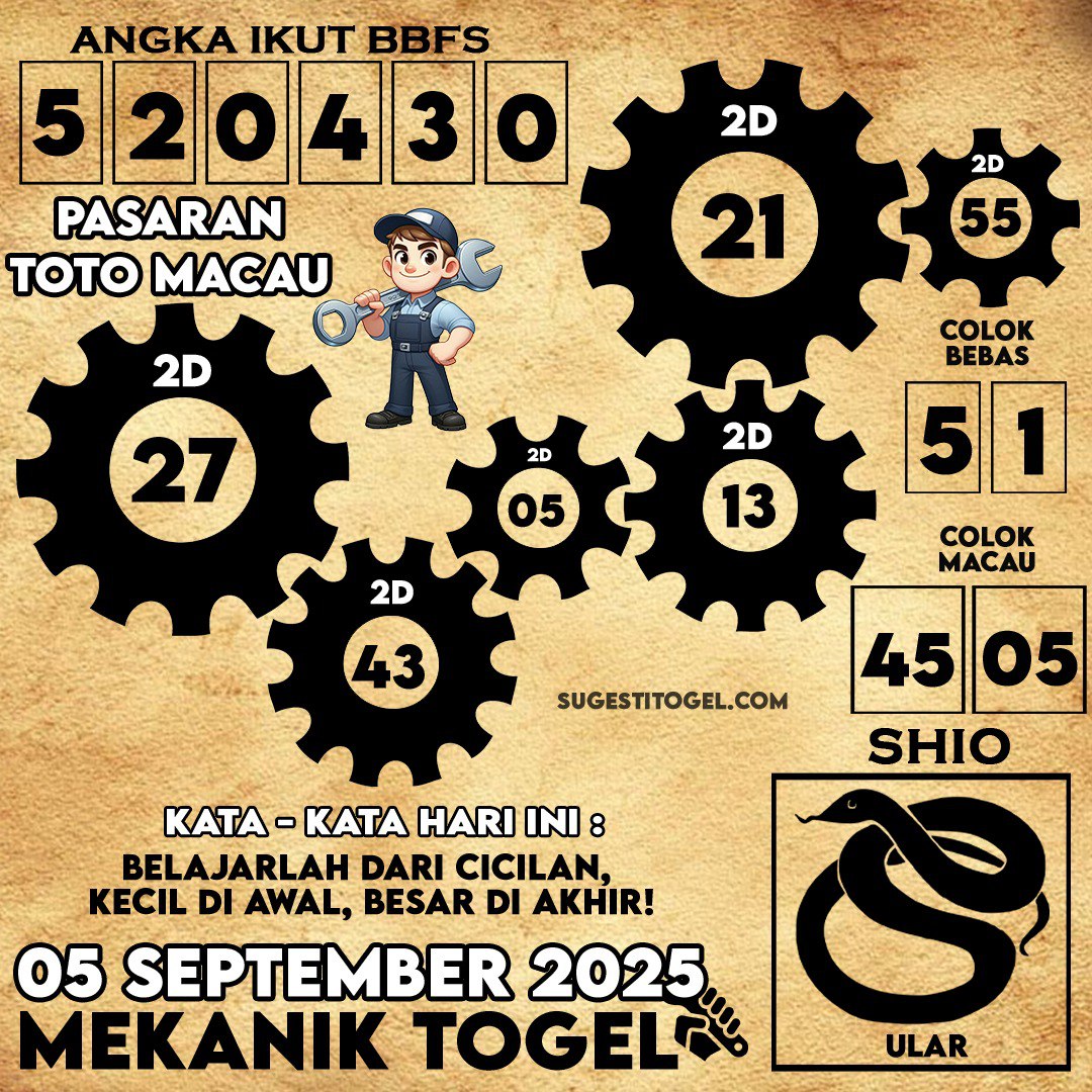 KODE SYAIR MACAU POOLS 05 SEPTEMBER 2025