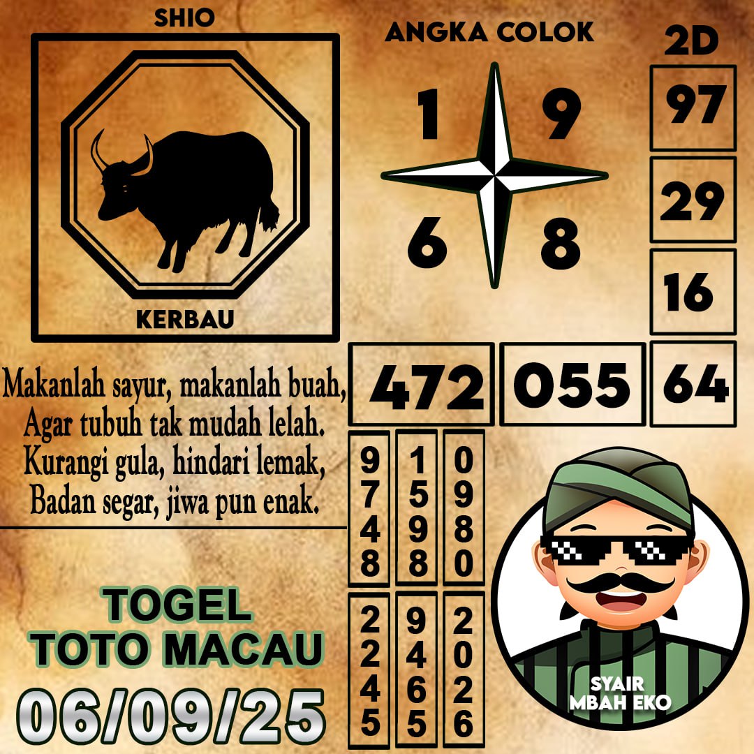 KODE SYAIR MACAU POOLS 06 SEPTEMBER 2025