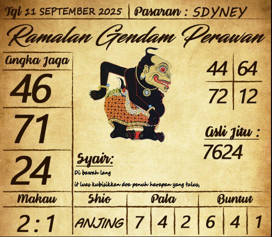Syair Sdy—Syair Sydney—Kode Syair Sdy adalah sumber informasi yang sangat membantu dalam menentukan pemenang dalam permainan Togel Sydney. Dengan mengikuti Forum Syair Sdy ini, Anda akan mendapatkan panduan terbaik untuk membuat keputusan taruhan yang lebih bijak dan akurat. Silahkan gabungkan prediksi syair sdy kami dengan angka yang Anda miliki setelah Anda mengetahuinya.