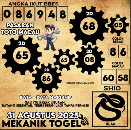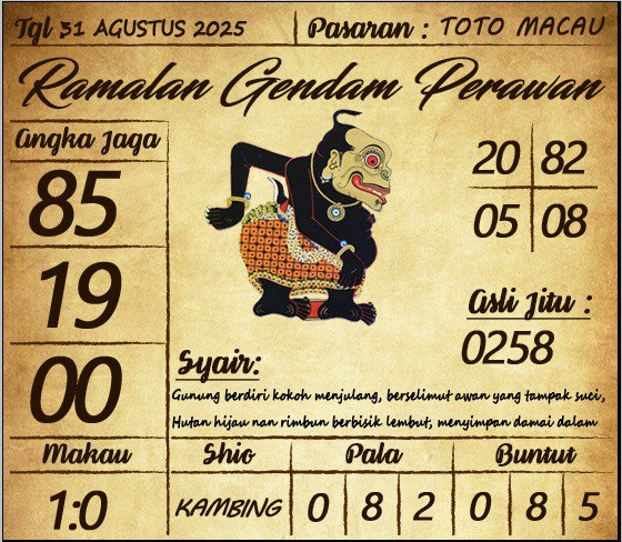 KODE SYAIR MACAU POOLS 31 AGUSTUS 2025