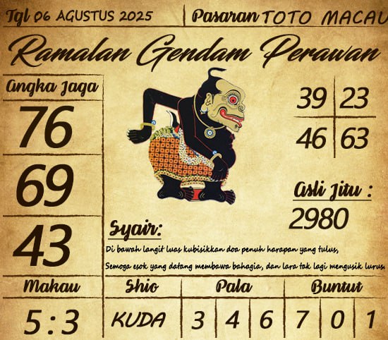 KODE SYAIR MACAU POOLS 6 AGUSTUS 2025
