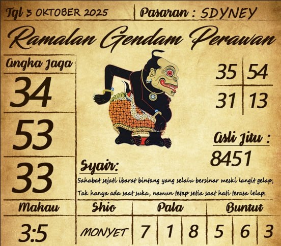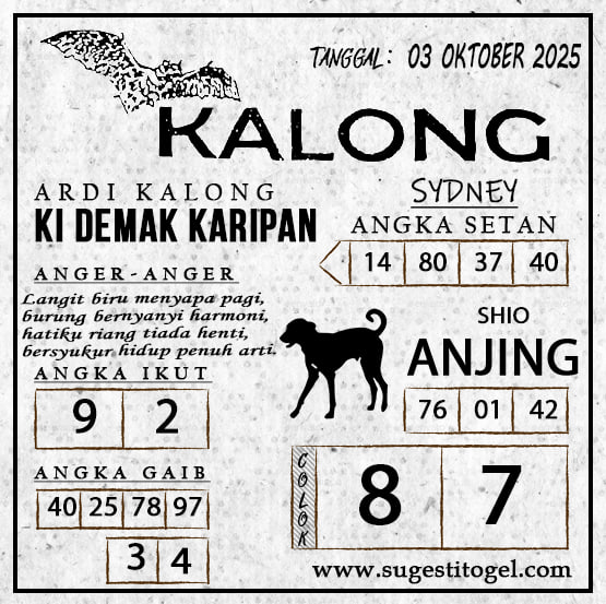 Syair Sdy—Syair Sydney—Kode Syair Sdy adalah sumber informasi yang sangat membantu dalam menentukan pemenang dalam permainan Togel Sydney. Dengan mengikuti Forum Syair Sdy ini, Anda akan mendapatkan panduan terbaik untuk membuat keputusan taruhan yang lebih bijak dan akurat. Silahkan gabungkan prediksi syair sdy kami dengan angka yang Anda miliki setelah Anda mengetahuinya.