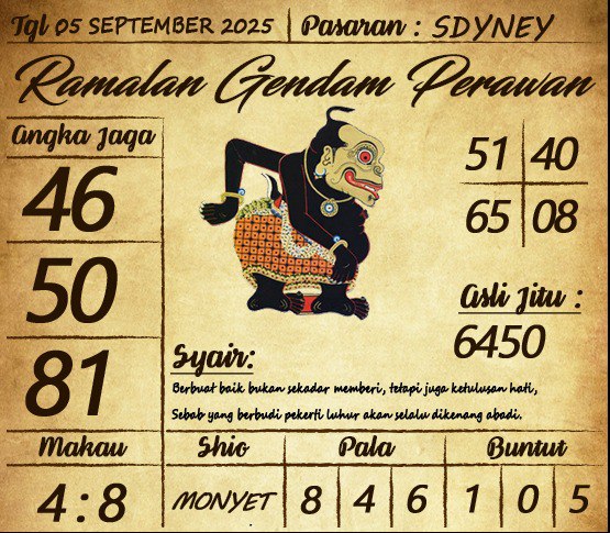 Syair Sdy—Syair Sydney—Kode Syair Sdy adalah sumber informasi yang sangat membantu dalam menentukan pemenang dalam permainan Togel Sydney. Dengan mengikuti Forum Syair Sdy ini, Anda akan mendapatkan panduan terbaik untuk membuat keputusan taruhan yang lebih bijak dan akurat. Silahkan gabungkan prediksi syair sdy kami dengan angka yang Anda miliki setelah Anda mengetahuinya.