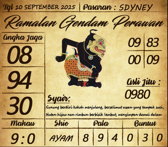 Syair Sdy—Syair Sydney—Kode Syair Sdy adalah sumber informasi yang sangat membantu dalam menentukan pemenang dalam permainan Togel Sydney. Dengan mengikuti Forum Syair Sdy ini, Anda akan mendapatkan panduan terbaik untuk membuat keputusan taruhan yang lebih bijak dan akurat. Silahkan gabungkan prediksi syair sdy kami dengan angka yang Anda miliki setelah Anda mengetahuinya.