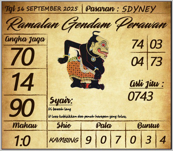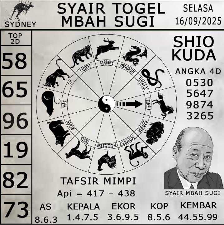 Syair Sdy—Syair Sydney—Kode Syair Sdy adalah sumber informasi yang sangat membantu dalam menentukan pemenang dalam permainan Togel Sydney. Dengan mengikuti Forum Syair Sdy ini, Anda akan mendapatkan panduan terbaik untuk membuat keputusan taruhan yang lebih bijak dan akurat. Silahkan gabungkan prediksi syair sdy kami dengan angka yang Anda miliki setelah Anda mengetahuinya.