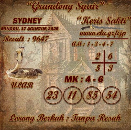 KODE SYAIR SDY | SYDNEY POOLS 17 AGUSTUS 2025