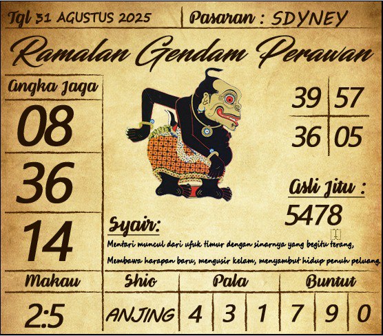 Syair Sdy—Syair Sydney—Kode Syair Sdy adalah sumber informasi yang sangat membantu dalam menentukan pemenang dalam permainan Togel Sydney. Dengan mengikuti Forum Syair Sdy ini, Anda akan mendapatkan panduan terbaik untuk membuat keputusan taruhan yang lebih bijak dan akurat. Silahkan gabungkan prediksi syair sdy kami dengan angka yang Anda miliki setelah Anda mengetahuinya.