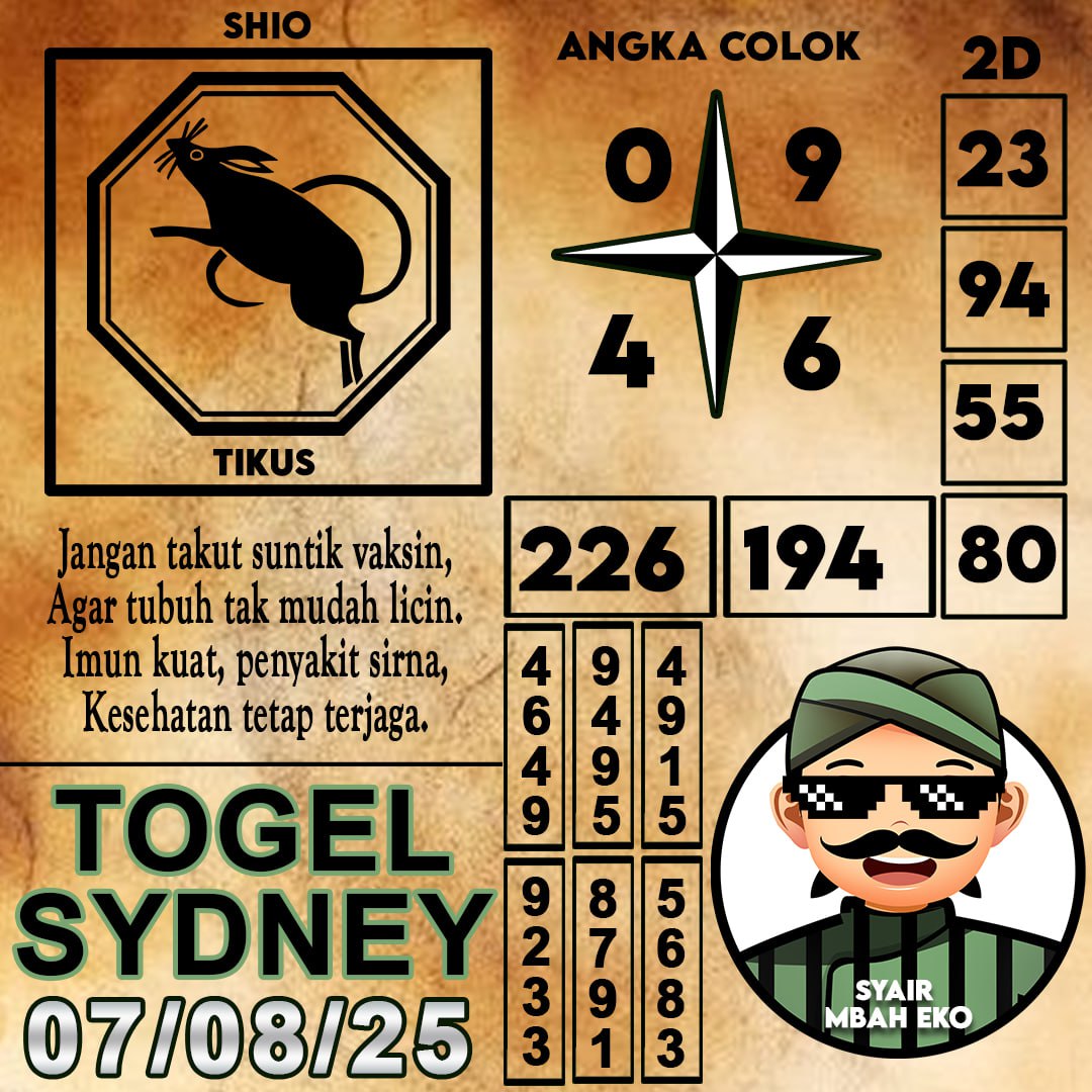 Syair Sdy—Syair Sydney—Kode Syair Sdy adalah sumber informasi yang sangat membantu dalam menentukan pemenang dalam permainan Togel Sydney. Dengan mengikuti Forum Syair Sdy ini, Anda akan mendapatkan panduan terbaik untuk membuat keputusan taruhan yang lebih bijak dan akurat. Silahkan gabungkan prediksi syair sdy kami dengan angka yang Anda miliki setelah Anda mengetahuinya.