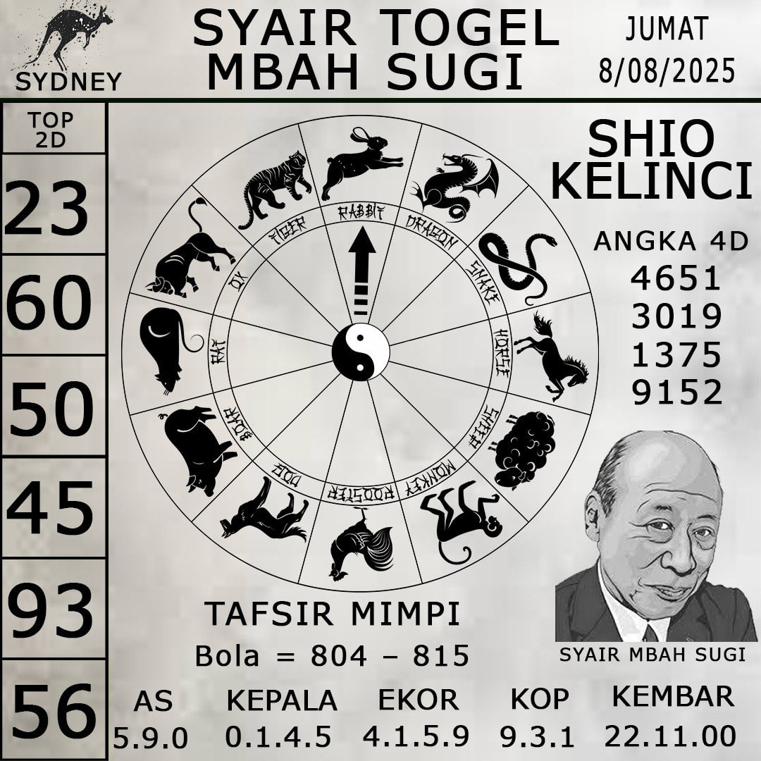 Syair Sdy—Syair Sydney—Kode Syair Sdy adalah sumber informasi yang sangat membantu dalam menentukan pemenang dalam permainan Togel Sydney. Dengan mengikuti Forum Syair Sdy ini, Anda akan mendapatkan panduan terbaik untuk membuat keputusan taruhan yang lebih bijak dan akurat. Silahkan gabungkan prediksi syair sdy kami dengan angka yang Anda miliki setelah Anda mengetahuinya.
