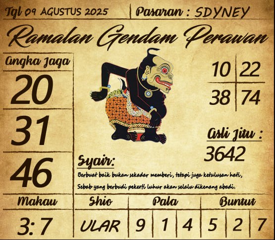 Syair Sdy—Syair Sydney—Kode Syair Sdy adalah sumber informasi yang sangat membantu dalam menentukan pemenang dalam permainan Togel Sydney. Dengan mengikuti Forum Syair Sdy ini, Anda akan mendapatkan panduan terbaik untuk membuat keputusan taruhan yang lebih bijak dan akurat. Silahkan gabungkan prediksi syair sdy kami dengan angka yang Anda miliki setelah Anda mengetahuinya.