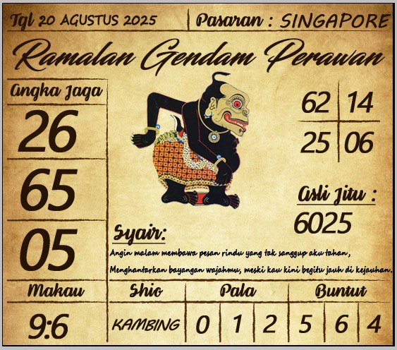 SYAIR SGP HARI INI RABU, 20 AGUSTUS 2025