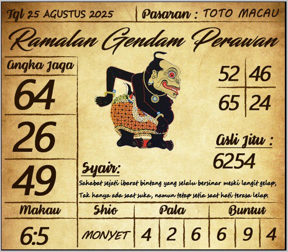 KODE SYAIR MACAU POOLS 25 AGUSTUS 2025