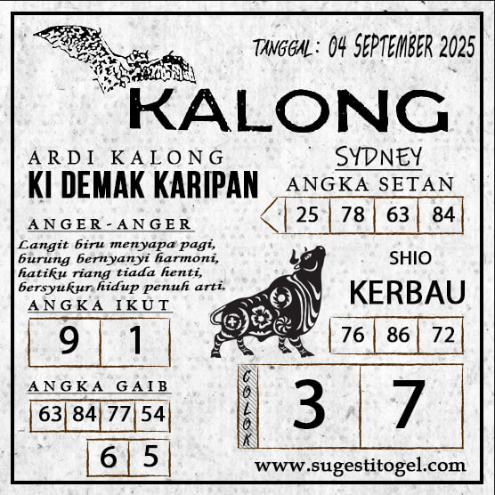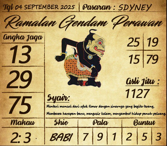 Syair Sdy—Syair Sydney—Kode Syair Sdy adalah sumber informasi yang sangat membantu dalam menentukan pemenang dalam permainan Togel Sydney. Dengan mengikuti Forum Syair Sdy ini, Anda akan mendapatkan panduan terbaik untuk membuat keputusan taruhan yang lebih bijak dan akurat. Silahkan gabungkan prediksi syair sdy kami dengan angka yang Anda miliki setelah Anda mengetahuinya.