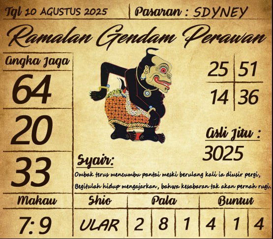 KODE SYAIR SDY | SYDNEY POOLS 10 AGUSTUS 2025