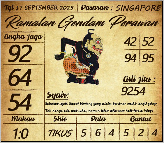 SYAIR SGP HARI INI RABU, 17 SEPTEMBER 2025